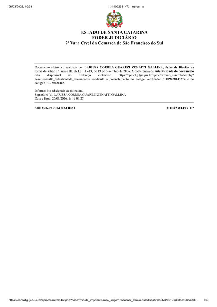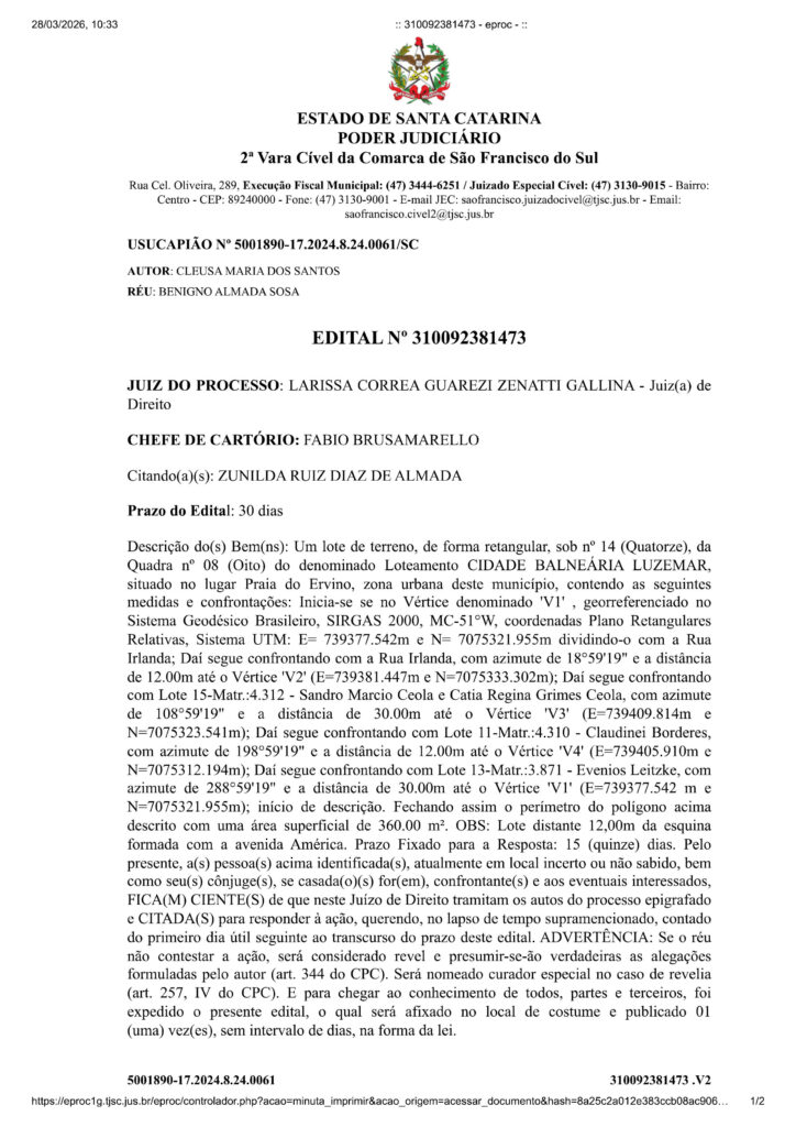 Outras notícias:  Publicação Legal: Usucapião Nº 5005422-96.2024.8.24.0061/SC-01