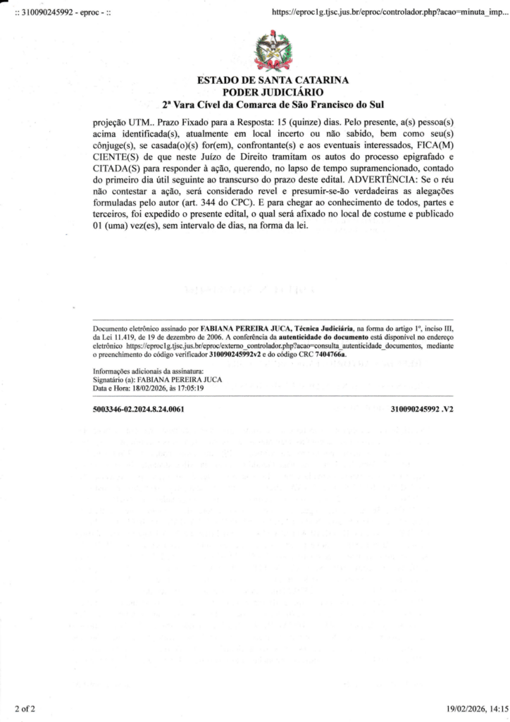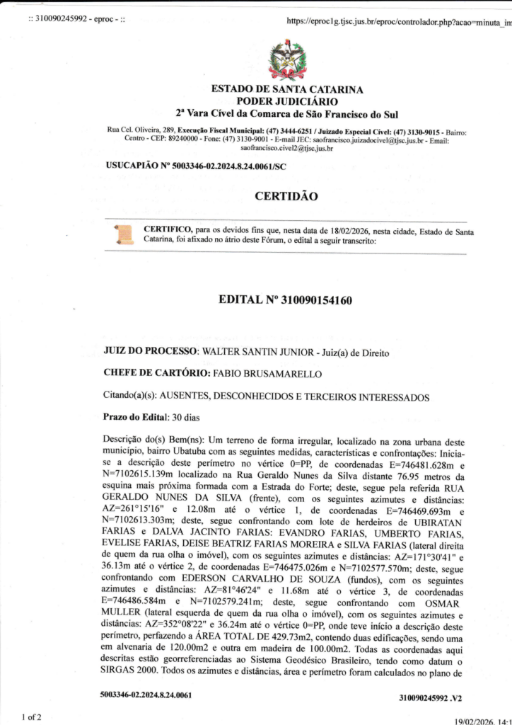 Outras notícias:  Publicação Legal: Usucapião Nº 5003078-16.2022.8.24.0061/SC-01